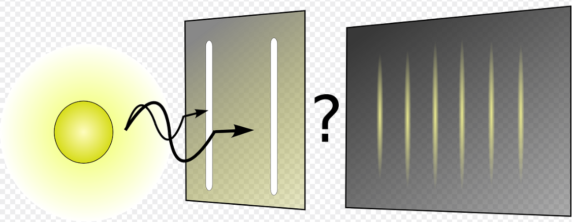 여기서 원래대로라면 감광판에 간섭 무늬가 남기 위해선 A슬릿을 통과한 파동과 B슬릿을 통과한 파동(전자)이 서로 간섭을 일으켜야 하고, 서로 간섭을 일으키기 위해선 각각의 슬릿을 최소한 하나씩의 전자가 동시에 통과해야 한다. 하나씩의 전자를 차례대로 발사해서는 결코 이 전자는 감광판에 간섭 무늬를 남겨서는 안 된다.