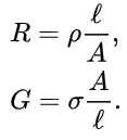 도체 저항은 재료의 종류, 단면적에 의해 결정된다. 두꺼운 구리선은 동일 얇은 구리선보다 더 적은 저항을 받는다. 저항은 길이에 비례한다. 짧은 구리선은 긴 구리선보다 적은 저항을 받는다. 따라서 균일 단면적의 도체저항 R과 전도도 G는
